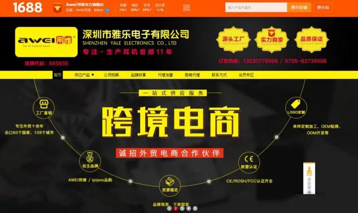深圳市雅乐电子有限公司,80%业务属于外贸出口。在深圳当地已与各大跨境电商企业深入合作。与深圳某跨境企业合作,一年内时间,从月采购额几千元到目前的月采购额近百万元,客户都是从小培养做起。(此客户也是通过1688平台咨询到如今的深入合作,只不过在跨境专供市场正式启动之前已经开始合作~)