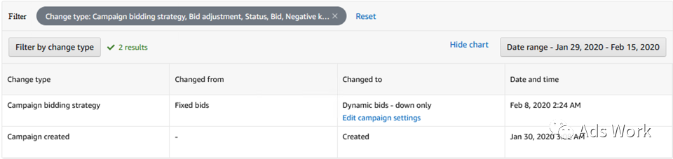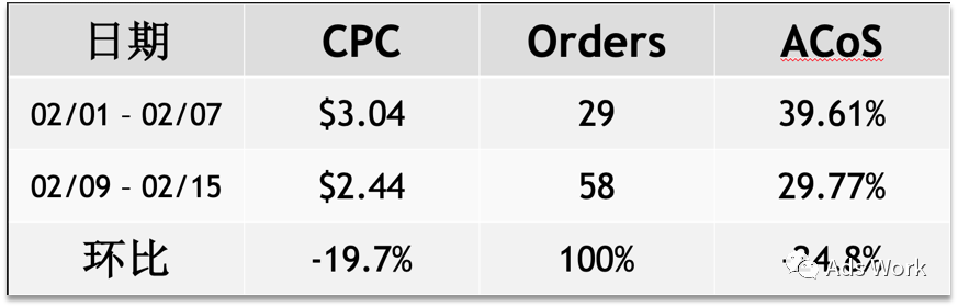 案例为1月30日创建的全新广告campaign,2月8日进行了广告竞价策略的调整,以此为基础选取了 2月1日 - 2月7日 与 2月9日 - 2月15日进行对比。