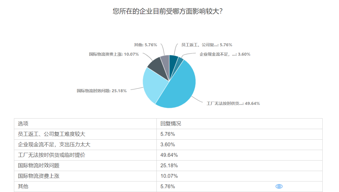 与2019年同期业务量对比:60%以上的卖家都表示不如去年同期,但是仍然有20%左右的卖家业务量/订单量相比2019年同期相比是提升了的!顺势易,逆势难,这部分企业的综合实力应该很强,或者抓住了某种机遇,亦或是传说中逆境中崛起的大卖,未来的跨境主角?未来可期!而此刻正在阅文的你,处于何种位置呢?