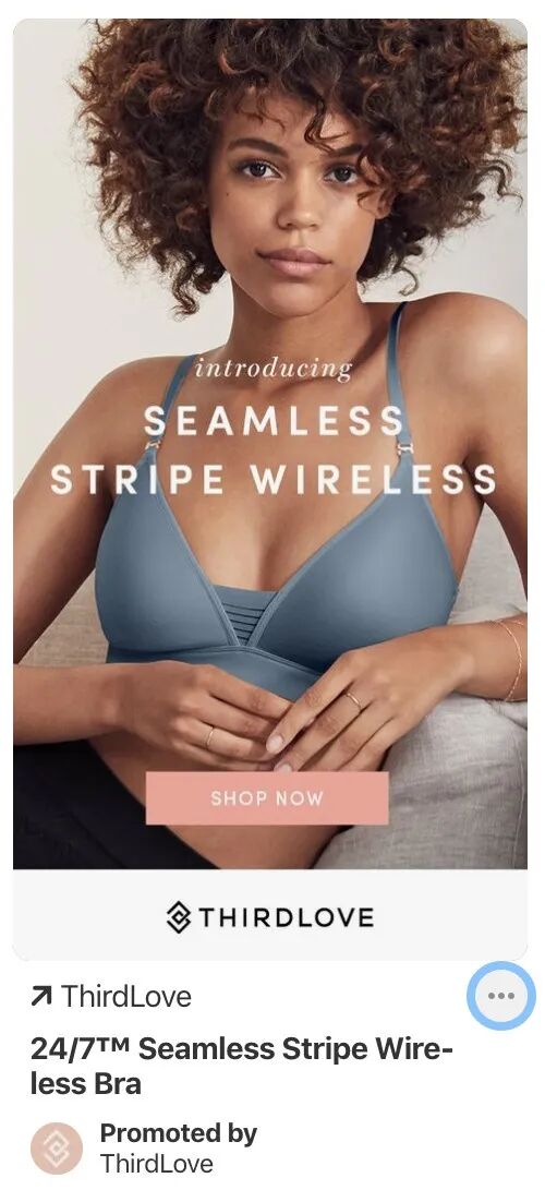 下图中内衣品牌 ThirdLove 的广告就可将用户直接带到产品页面,它的设计与内容一样简单大气。