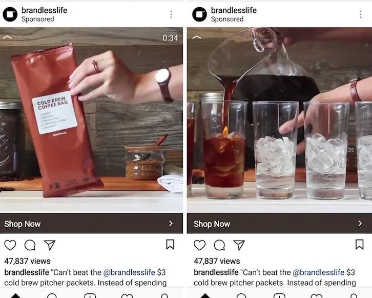 Brandless则利用 Instagram 广告来提高其产品销量。在下图的广告中,他们通过一个简短的视频来介绍产品。