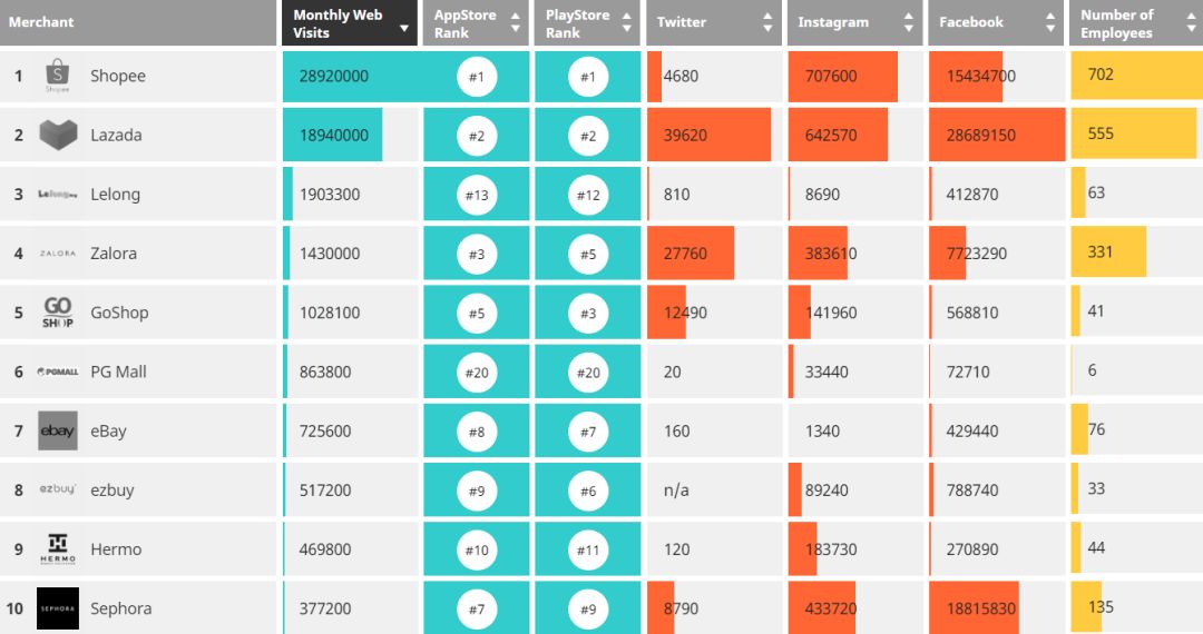 前天(3月3日),Iprice集团发布了2019年4季度东南亚各国电商平台的相关数据,指点了“逐路英雄”!
