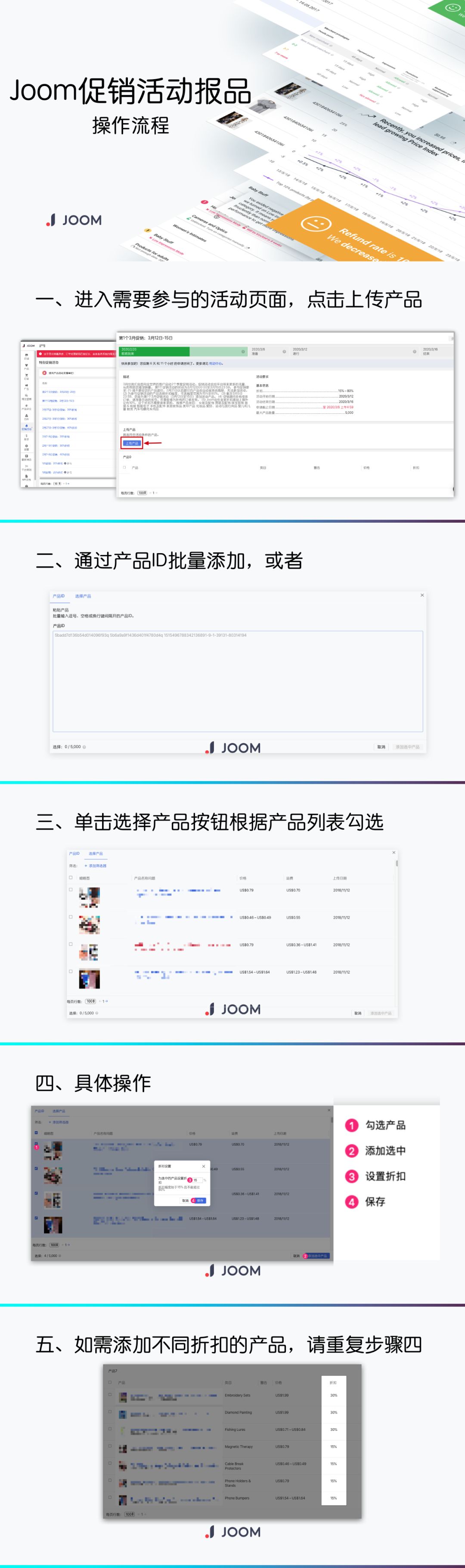 正如之前推文提到的,Joom本身就是一个千人千面的个性化推荐平台,在每日促销之前Joom就已经存在很多类目的活动,但是这些活动都是平台通过算法推荐或者产品运营团队来人工选品,现在Joom把这个机会交给卖家,去推广自己的优质产品,选择合适的折扣,对于卖家来说自由度更高了。