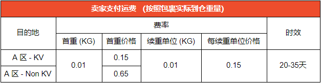 马来西亚站点Economy Delivery普通渠道时效及参考运费见下表: