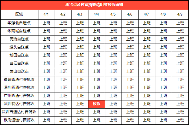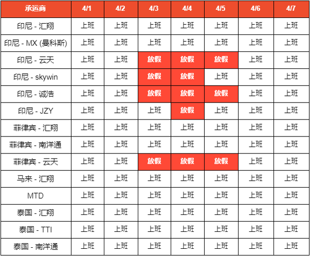 1. Shopee转运仓及免费揽货服务清明节放假时间