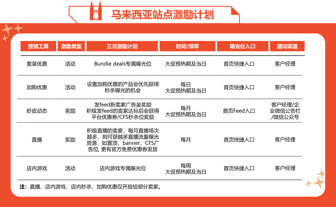 答:激励计划适用于积极使用营销工具的卖家,您可先提前使用设置上述营销工具,具体条件会在客户经理联系您时告知!