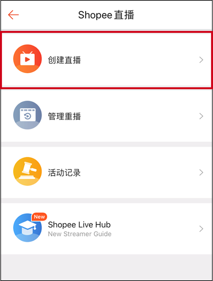 登录ShopeeAPP,在“我的”中找到“直播视频”选项进入后,点击“创建直播” (见下图)。直播创建详细教程可查看Shopee大学直播设置教程