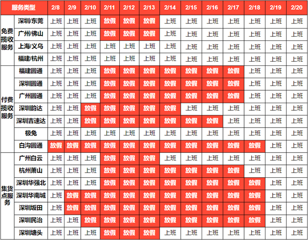 2.免费揽收服务/付费揽收服务/集货点服务春节放假时间