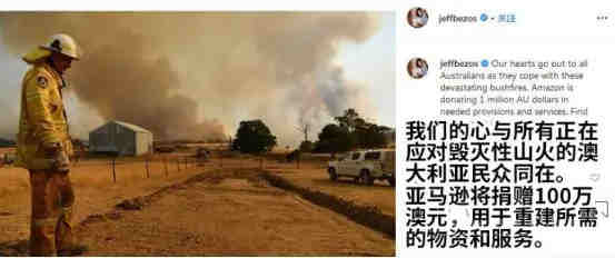 山火肆虐,世界各地的名人巨亨见状纷纷伸出援手,灾后重建工作积极捐款,这其中也包括现任世界首富、亚马逊 CEO 杰夫 · 贝索斯,也就是我们亲爱的姐夫。