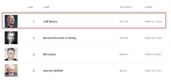 据福布斯实时富豪榜数据,贝索斯现在的净资产为1172亿美元。