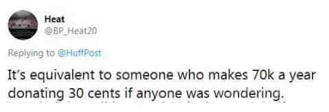 看了网友的换算,大家开始全力吐槽贝索斯,并指出好多个人财富远不及贝索斯的名人,他们的捐款额却并不低于姐夫。来看看他们都捐了多少吧。