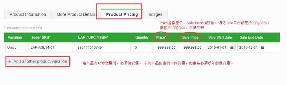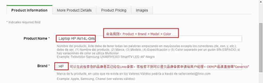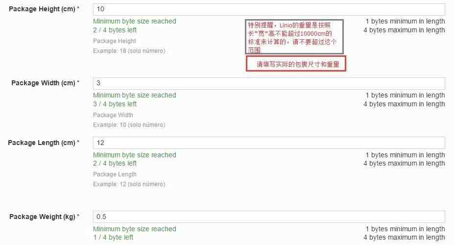 注意:对于国际买家,Product Warranty in Months 必须填写 0,如果不填,Linio 系统会默认保修期为 12 个月; Product Warranty 必须需要填写:Satisfacción Linio de 14 días naturales
