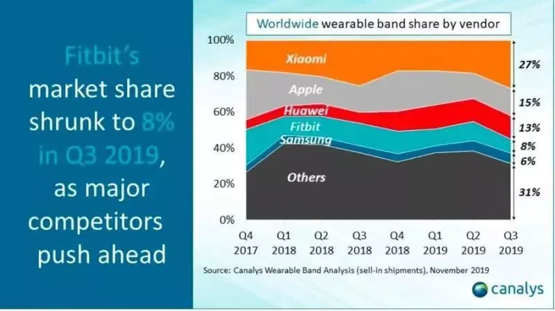 自去年年底以来,苹果一直在提高产能,这使供应商能够应对不断增长的需求。华为紧随其后,出货量为590万台,年增长率243%。得益于华为国内市场的强势,华为设法保持了对最近完成收购的Fitbit的领先地位,后者则排名第四。Fitbit在第三季度步履蹒跚,是前五名中唯一一家出货量不超过去年的供应商。它在9月份的新品发布提供了其急需的市场推动力,但其收购谈判却对供应商造成干扰。三星则排名最后,最近的Galaxy Fit tracker使它在亚太地区获得了强劲的发展。