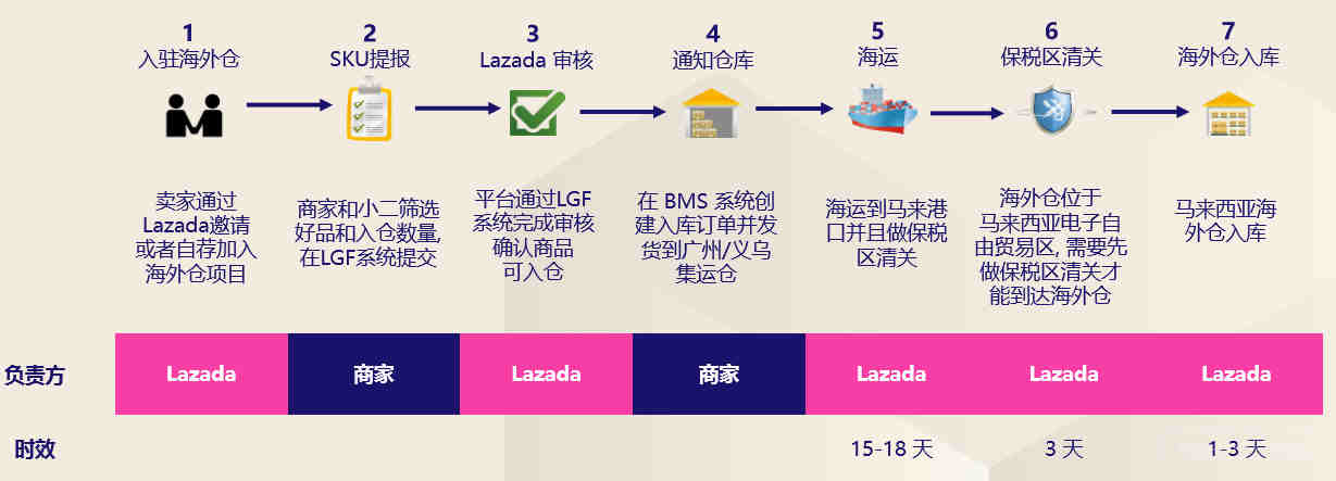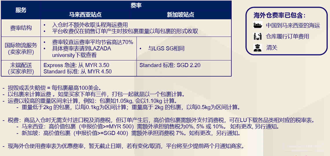 Lazada为商家提供的跨境海外仓服务,我们也叫LGF (Lazada Global fulfillment) 。 目前我们设立了马来西亚海外仓(马来西亚电子自由贸易区的保税仓) 该服务仅开放马来西亚,新加坡市场,新加坡市场是通过马来海外仓发货到新加坡实现。