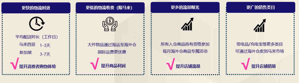 Express 3.5马币 vs 直运5.2RM起,海外仓商品端到端费用更低,建议卖家设置包邮,提高转换率