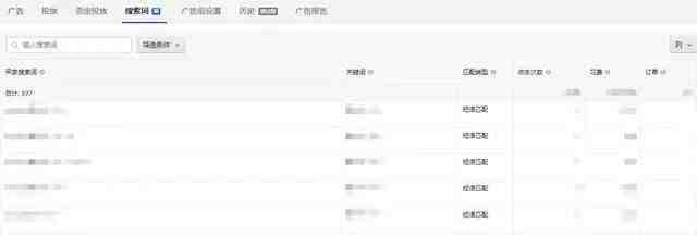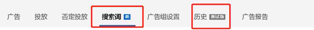 我们就能看到,这个搜索词和历史的两个新按钮,搜索词是帮助我们卖家找到客户使用的关键词。