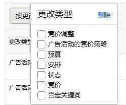 这个广告的历史功能,目前可以记录的数据有竞价、竞价策略、预算等等,能通过筛选选择自己想要看的变动记录。