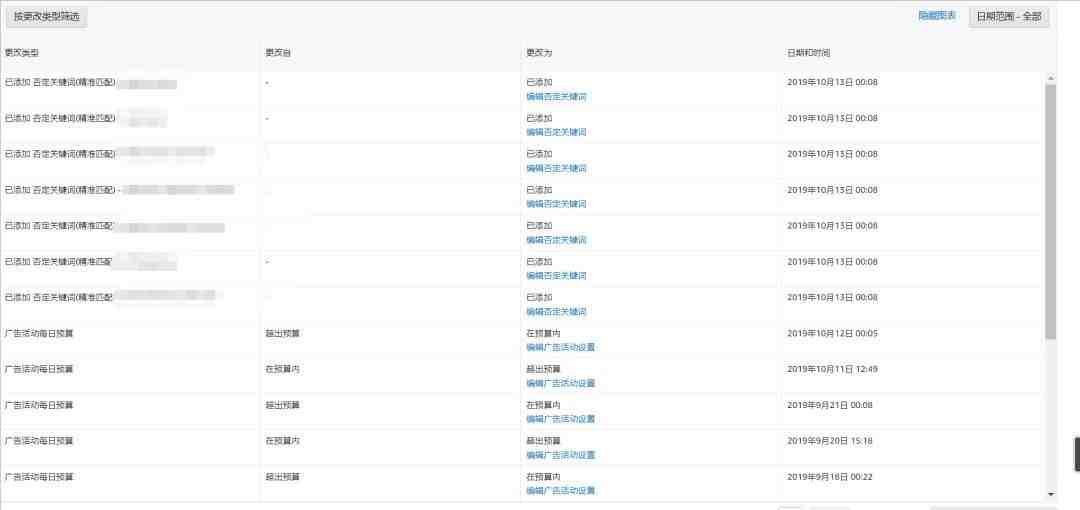 有了广告的历史功能,就能很清楚的记录自己所做过的优化,清晰的看到每一条自己对广告活动的操作,哪怕是超出了广告预算,它也会帮我们记录在里面。