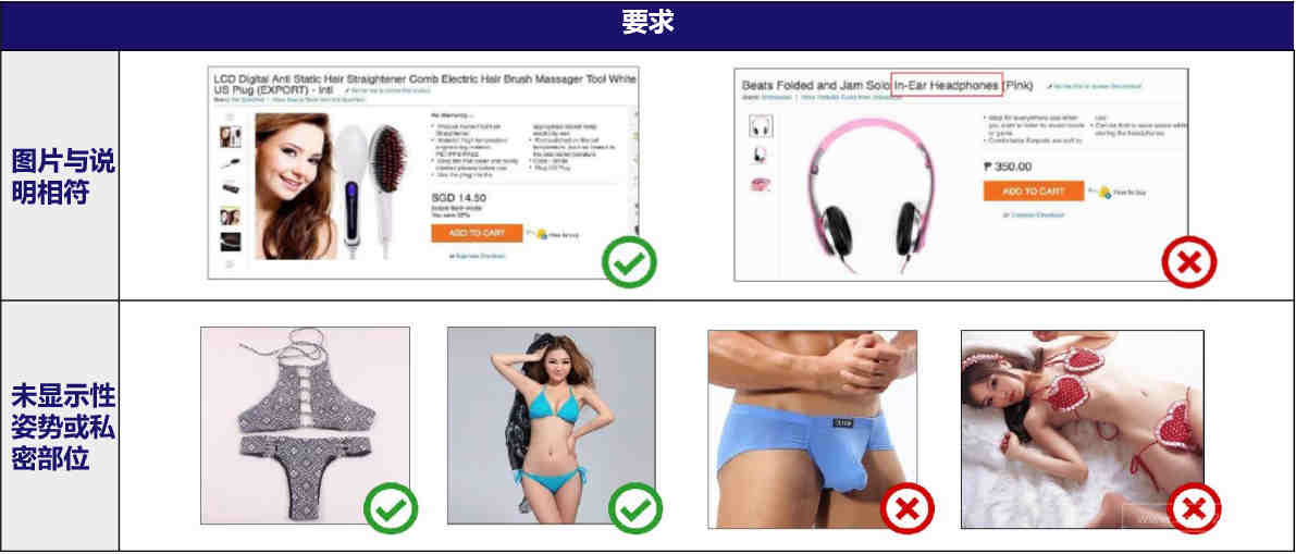 考虑到由于文化差异和敏感性,我们的用户(从某些图像中) 可能会感到不适,因此Lazada禁止展示裸露或性行为。