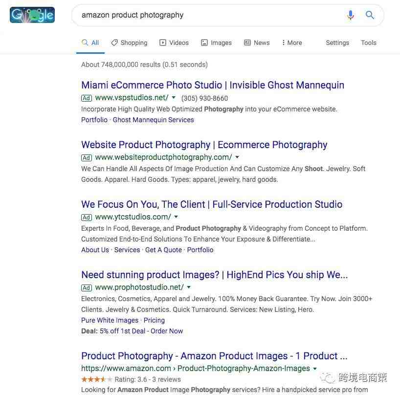 第一步:打开谷歌我们就搜索看看亚马逊产品拍摄的服务机构的网站吧,很简单谷歌输入amazon product photography