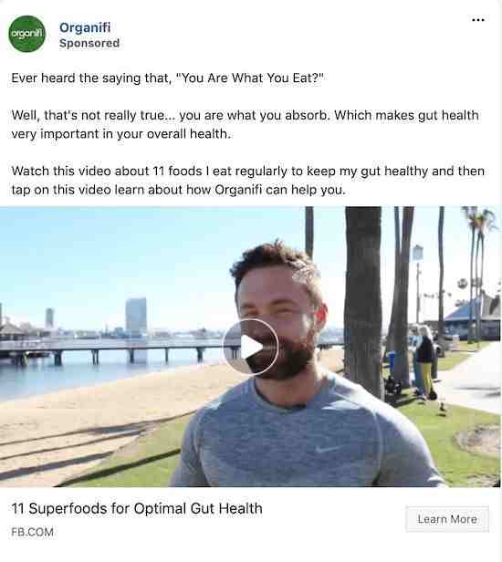 我们都知道,如果你不告诉某人怎么做,他将不会采取行动。因此,广告的图片下方会有一个行动号召按钮,文章中也会有一个给读者的按钮或是一个链接,因为有些人(尤其是在观看视频时)并不知道他们需要点击视频下方灰色区域的哪部分才能转到URL。行动号召应该简短而亲切,不要超过三句话。如果你有折扣代码,则可以在这里提到。告诉用户所有正确的操作方法,无论是观看、选择进入、购买还是其他。就像Organifi说的:“观看这则视频,了解我是如何通过常吃这11种食物来保持内脏健康的;然后点击这则视频,了解Organifi能为你提供哪些帮助。”需要注意的是,尽量少使用“购买此商品”之类的字眼,因为Facebook会对此进行索引。同时,很多账户会因为使用“夸大用语”被关闭,因此在使用行动号召时,减少使用激进词语,如“时间不多了”,“数量有限”,“现在就买”,“最后机会”等等。from socialmediatoday