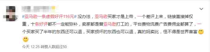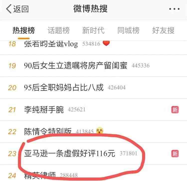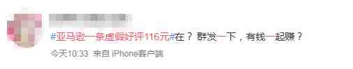 今天凌晨#亚马逊一条虚假好评116元#的话题悄然爬上了微博热搜。
