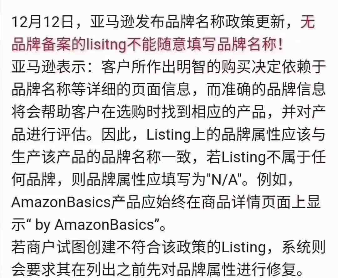 一、亚马逊发布品牌名称政策更新,以后无品牌的Listing不能随意填写品牌名称。