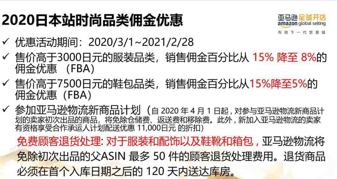 四、日本站的卖家有福了,日本站服装鞋包等类目做出佣金百分比下调,具体细则参考下面图片或者关注卖家中心后台的通知吧。