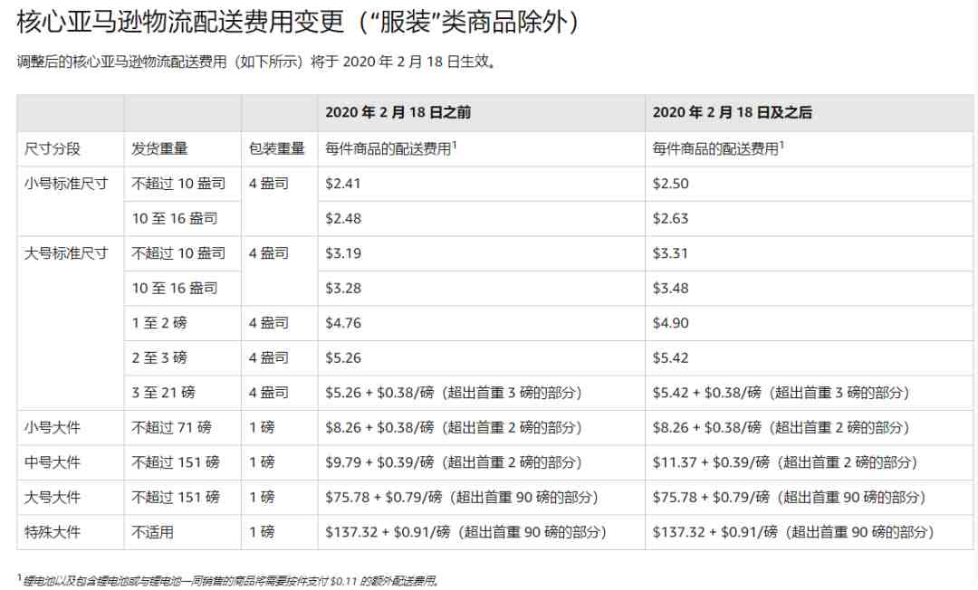 五、美国站FBA费率有小幅上调,卖家的利润又会或多或少的受到挤压,具体参考下面的费率表,或者直接查询卖家中心后台的通知吧。