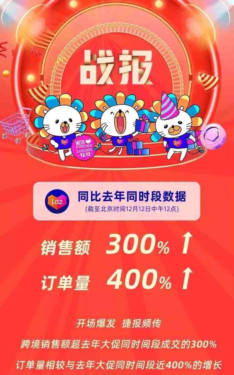 卖家表现热血沸腾,那么Lazada在这个双十二平台整体业绩表现如何呢?