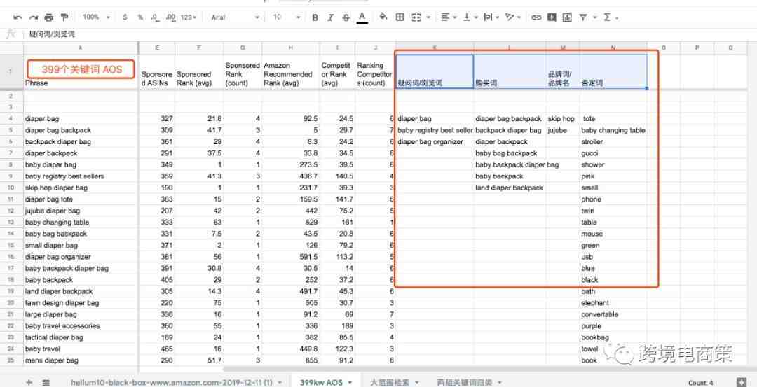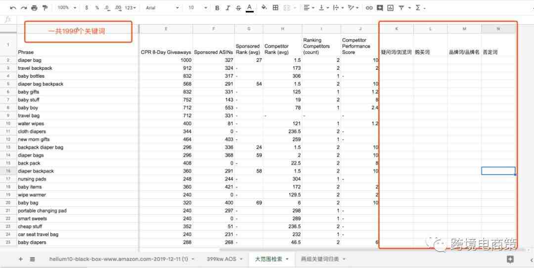 我在这一系列文章中已经和大家分享如何利用helium10的几个工具找到自己的竞争对手和相应的关键词,第一篇是确认竞争对手2020年亚马逊产品关键词调研最新方法【实操一】,第二篇如何检索产品关键词2020年亚马逊产品关键词调研方法之筛选关键词【实操二】,那我们的第三篇就是如何整理这些词,我认为这些亚马逊关键词可以归类为四类:疑问词,购买词,竞争者品牌词, 否定词