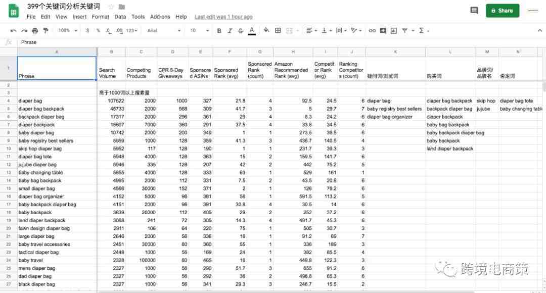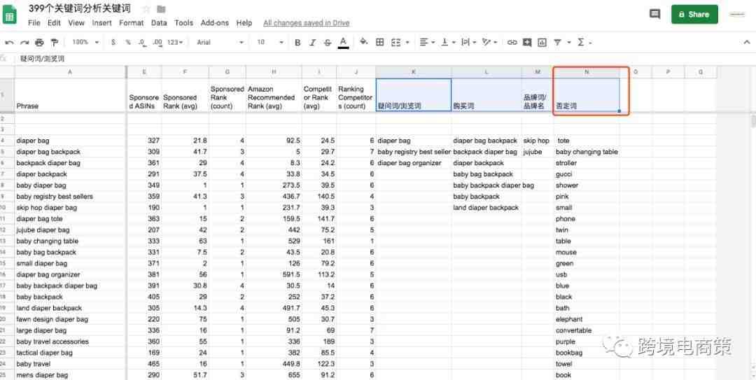 总结:关键词的筛选到整理归类是非常重要的,如果你没有做好这项工作,后面的优化 listing 还有投放广告选词 ,广告结构的布局,以及广告数据的分析会遇到众多问题,一开始做关键词分析的时候用点心,不怕麻烦,后面就容易很多。