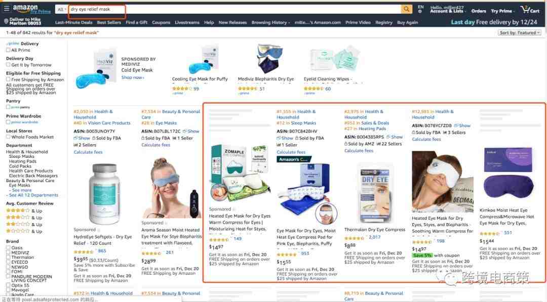 搜索这个词发现都是眼罩,只不过品牌不同,功能有差异,价格有差异,所以我们对关键词进行归类是非常有必要的。