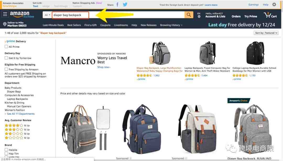 第一步:我们在以上表格中已经确定了我们的该产品的关键词,diaper bag backpack。