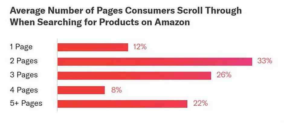 这组图展示了美国站的亚马逊卖家在搜索产品的时候,超过70%的顾客只会浏览到第三页就不会再继续往下面浏览了。