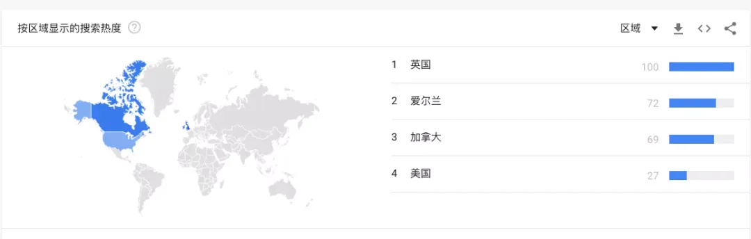 如下图Mountaineering Crampons热点区域所示,英国、爱尔兰、加拿大以及北美均为热搜地区。