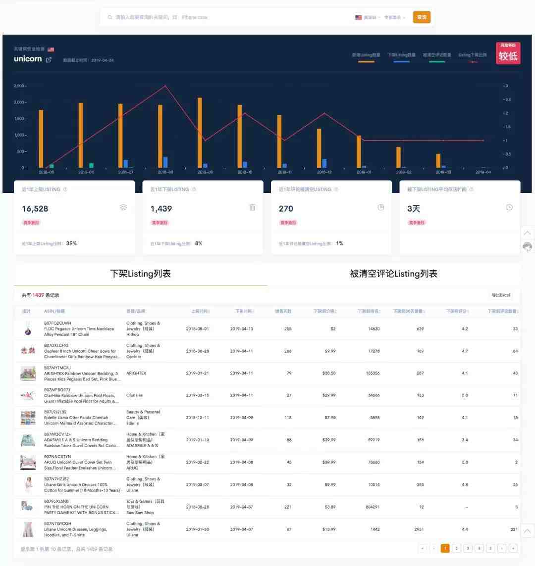 SellerMotor的这款工具只需输入你产品的核心关键词,就能分析这个关键词市场存有多大风险,比如:有多少Listing被删,被删的时间点以及各时间点的频率等等……也可以把这些被删Listing全部下载导出进行分析,给各位老铁用于评估市场风险。