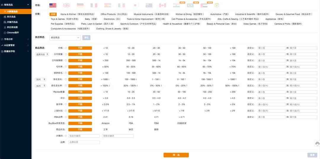 讲到这里想必有老铁肯定要问了,亚马逊上面的产品成千上万,如何根据我们既定的参数以及相应的筛选条件选出我们心仪的产品呢?如果手工去做完全无法实现吧?