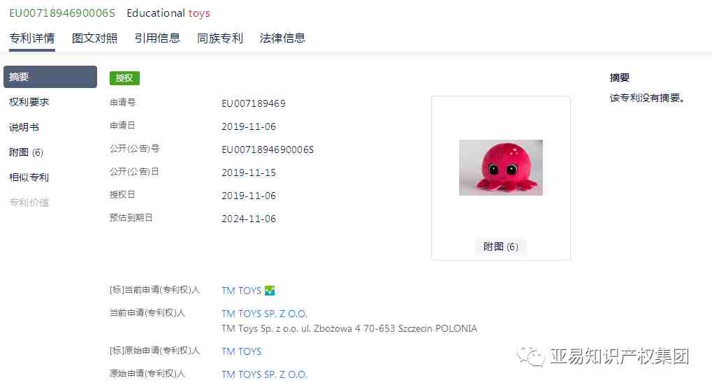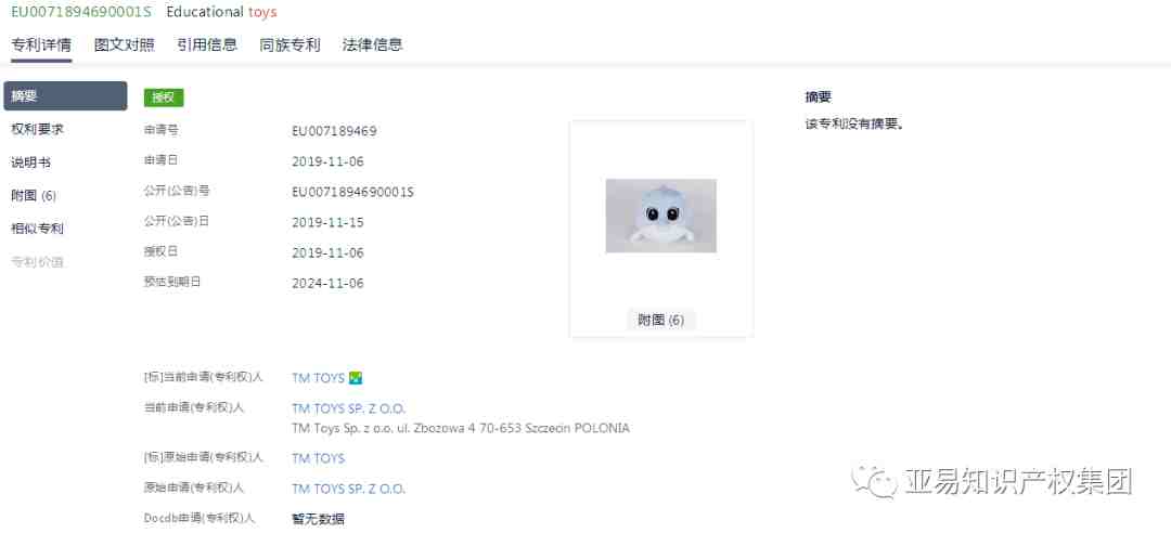 另外,同样具有欧盟外观专利的还有以下这款“小鸟”毛绒玩具,同样也是11月授权。