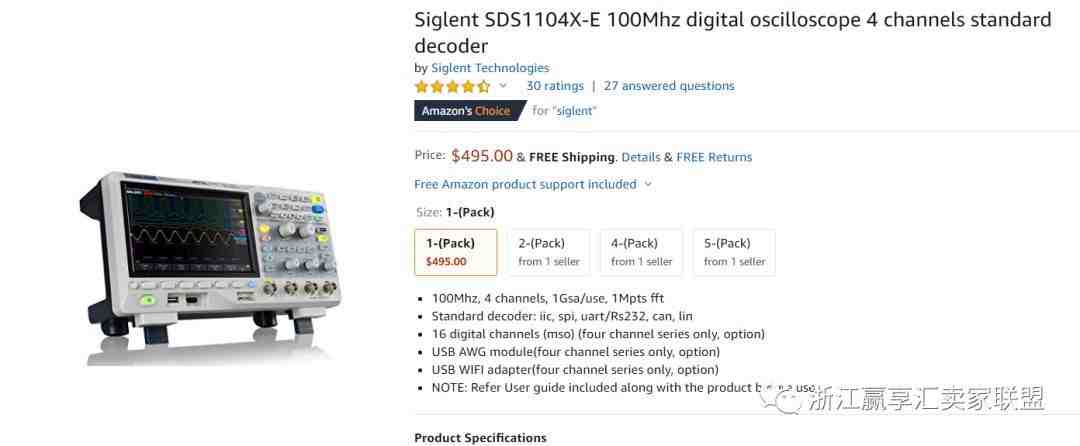 深圳鼎阳科技(SIGLENT)成立于2002年,是国内知名测试测量仪器生产厂家。2017年,推出了国内带宽最高的500MHz任意波形发生器—SDG6000X系列,打破海外垄断。2018年,推出集频谱分析仪和矢量网络分析仪于一体的产品SVA1000X系列,再次打破海外垄断。鼎阳科技产品包括数字示波器、手持示波表、函数/任意波形发生器、台式万用表、可编程直流电源、矢量网络分析仪、频谱分析仪、射频信号源、电子负载等通用测试测量仪器产品。鼎阳科技以Siglent Technologies的品牌在美国亚马逊出售多款产品,其中,这款任意波形发生器在美亚平台同类产品中销量排名第一。