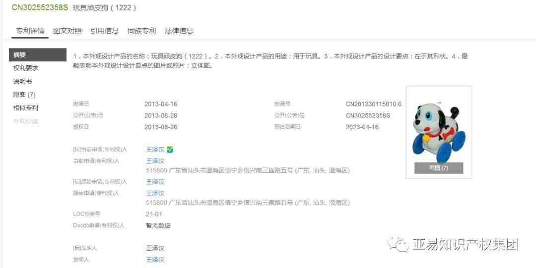 虽然这款销量冠军虽然暂时没有查询到相关专利,但是针对狗狗玩具,我们有检索到以下专利产品,卖家们可以参考一下: