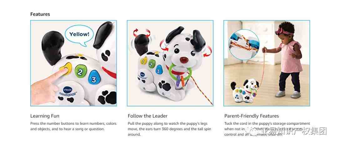 ▌产品特点:儿童推拉玩具中的销量冠军,用绳子拉动小狗能使其发出音乐跟声音,具有三个彩色按钮,鼻子会发光,具有60多种歌曲,旋律,声音和短语来激发孩子的语言天赋,可爱的形象跟牵拉式的玩法,让孩子爱不释手,需要2节AAA电池,适合6个月至3岁的年龄。