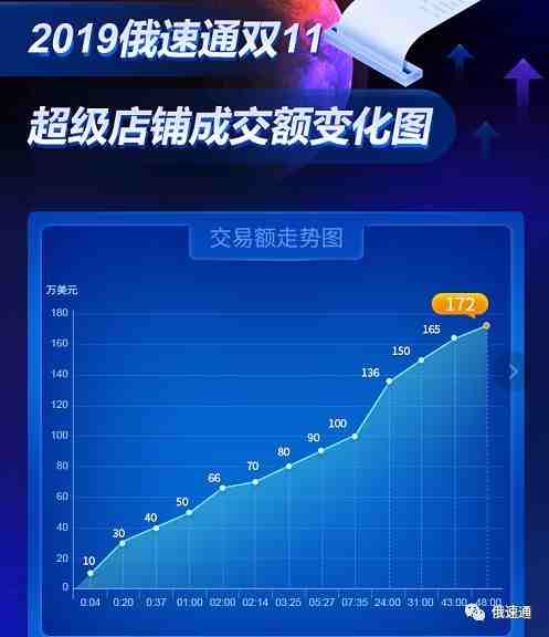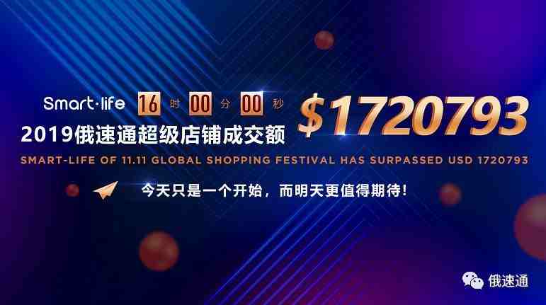 北京时间11月13日下午4时,为期两天的2019年俄罗斯双11大促正式结束。俄速通超级店铺的双11首秀最终以172万美金画上了一个完美的句号。