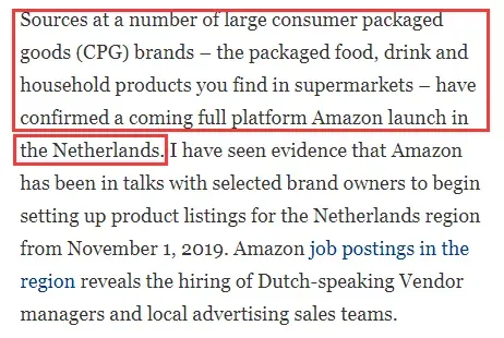 船长BI获悉,亚马逊于本周一(2019年11月11日)宣布正式启动希伯来语网站,即以色列站;同时开展了一项促销活动,为购买国际商品超过49美元的以色列客户提供免费的国际运输服务。 (图源亚马逊) 新的希伯来语网站主要针对以色列人和讲希伯来语的客户,现在,他们可以使用该语言访问并购买该网站上提供的数百万种产品。 不过,船长BI了解到,目前亚马逊尚无在以色列建立物流中心的计划,卖家希望列出自己的产品,但需要自行处理。 除了亚马逊宣布启动希伯来语网站之外,这几天还有消息在传,亚马逊或将在明年第一季度全面扩展欧洲的一个站点——荷兰站。 亚马逊将全面扩展荷兰站? 说荷兰站,可能很多卖家还不是很了解。下面,船长BI就先科普下,在2014年的时候,亚马逊就已经正式进入荷兰市场,设立荷兰站,但目前仅提供电子书销售。 (亚马逊荷兰站) 2018年开始将亚马逊德国200万个产品页面从德语翻译成荷兰语,荷兰的买家可以通过德国站长期购买产品,并使用本国的iDeal等付款方式进行付款,被购买的产品将在24小时内运输到荷兰。 船长BI获悉,据 forbes(福布斯)消息称,来自一些大型消费品包装品牌(CPG)的消息证实,亚马逊即将在荷兰推出全平台的产品。并且,还表示有证据表明,亚马逊一直在与选定的品牌所有者进行谈判,以便从2019年11月1日开始在荷兰地区建立产品清单。 亚马逊在该地区发布的招聘信息显示,该公司雇佣了讲荷兰语的供应商经理和当地的广告销售团队。 (图源forbes) 此外,船长BI还获悉,据荷兰媒体Emerce称,亚马逊已经在与荷兰供应商和潜在的销售经理接触。鉴于亚马逊的德国分公司已经使用荷兰语网站已有一段时间了,这在多大程度上真正改变了市场状况还有待观察。 同时,亚马逊已经将大量产品页面翻译成荷兰语。当地的消费者可获得大约数百万种产品。此外,亚马逊还没有计划在荷兰建立物流中心,订单由德国边境的其他物流中心处理。 荷兰的供应商(卖家)和卖家已经可以创建一个所谓的荷兰账户中心,如下图的公告所示: (图源Emerce) 在这份公告中,船长BI注意到,并没有提到关于荷兰站将全面扩展或启动日期等内容。 亚马逊对此作出如下回应 虽然亚马逊有扩展荷兰站的可能,但到目前为止,亚马逊尚未正式公开宣布将要扩展荷兰站。另根据船长BI获悉的最新消息,有知情人士联系亚马逊得到的回应推翻了这一传言。 亚马逊的一位发言人表示: “我们对此未作任何宣布。” 多年来,很多业内人士就一直在谈论将亚马逊扩展到荷兰的潜力。船长BI认为,如果亚马逊真的实行这项举措,将主要与当地的主要电商平台Bol.com展开竞争。 这几天,无论是外媒还是国内媒体都在报道亚马逊要在扩展荷兰站的消息,针对这一“传言”,在欧洲卖家中还引发了不小的骚动。 荷兰市场有哪些新商机? 1、荷兰作为发达国家,电商市场成熟; 2、女性是荷兰网购主流,服装最受女性消费者追捧; 3、男性在荷兰网购的趋势也在逐年增长,体育用品、软硬件及电子产品最受男性青睐; 4、自行车市场需求最大,据有关调研数据显示,有超过70%的荷兰人骑自行车出行; 5、自行车装饰和周边也颇受欢迎。 无论亚马逊是否真的有可能在明年会扩展荷兰站,卖家们都可以随时关注一下。亚马逊一直在实行全球扩张的战略,荷兰不出意外很大可能就是卖家下一个待分的蛋糕,既是机遇,也是挑战。可以提前对该市场做个调研,对于后续站点布局也是有帮助的。