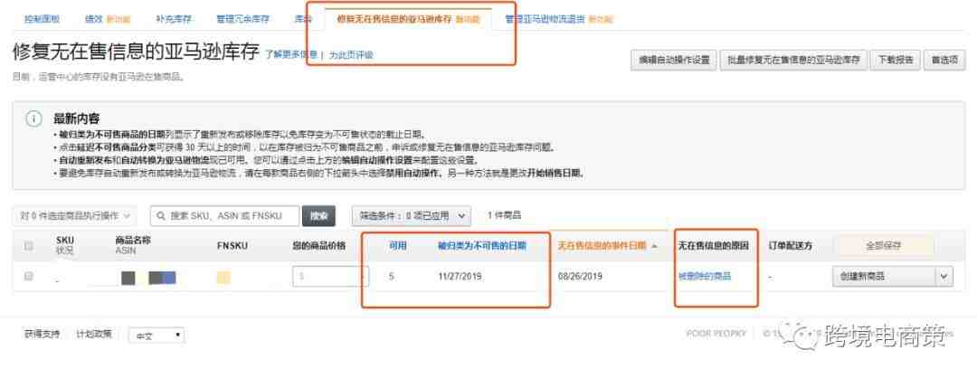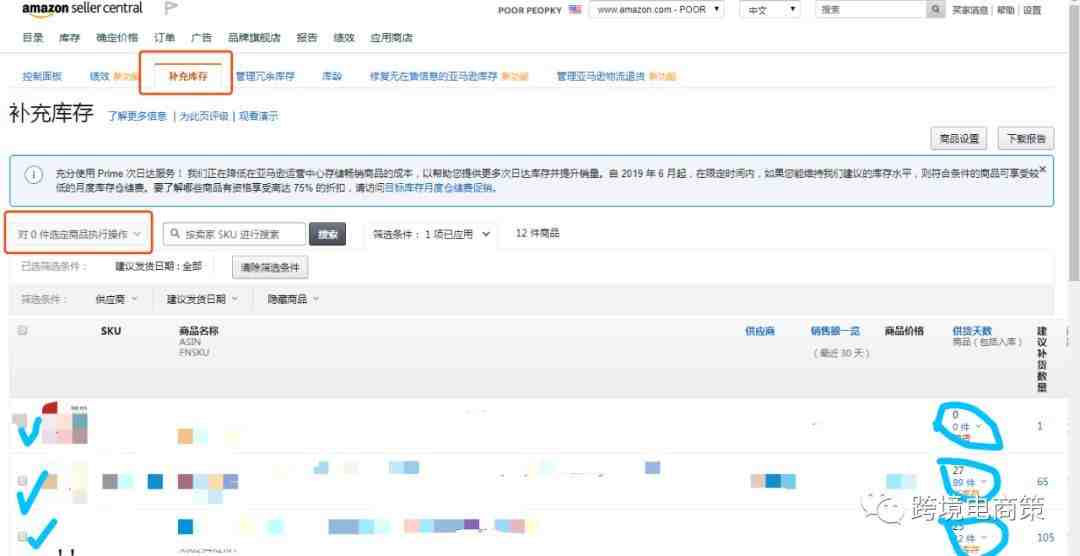 这里建议的库存数据都要隐藏掉,你可以直接选出亚马逊说缺库存和补库存的那条数据批量操作隐藏就可以了