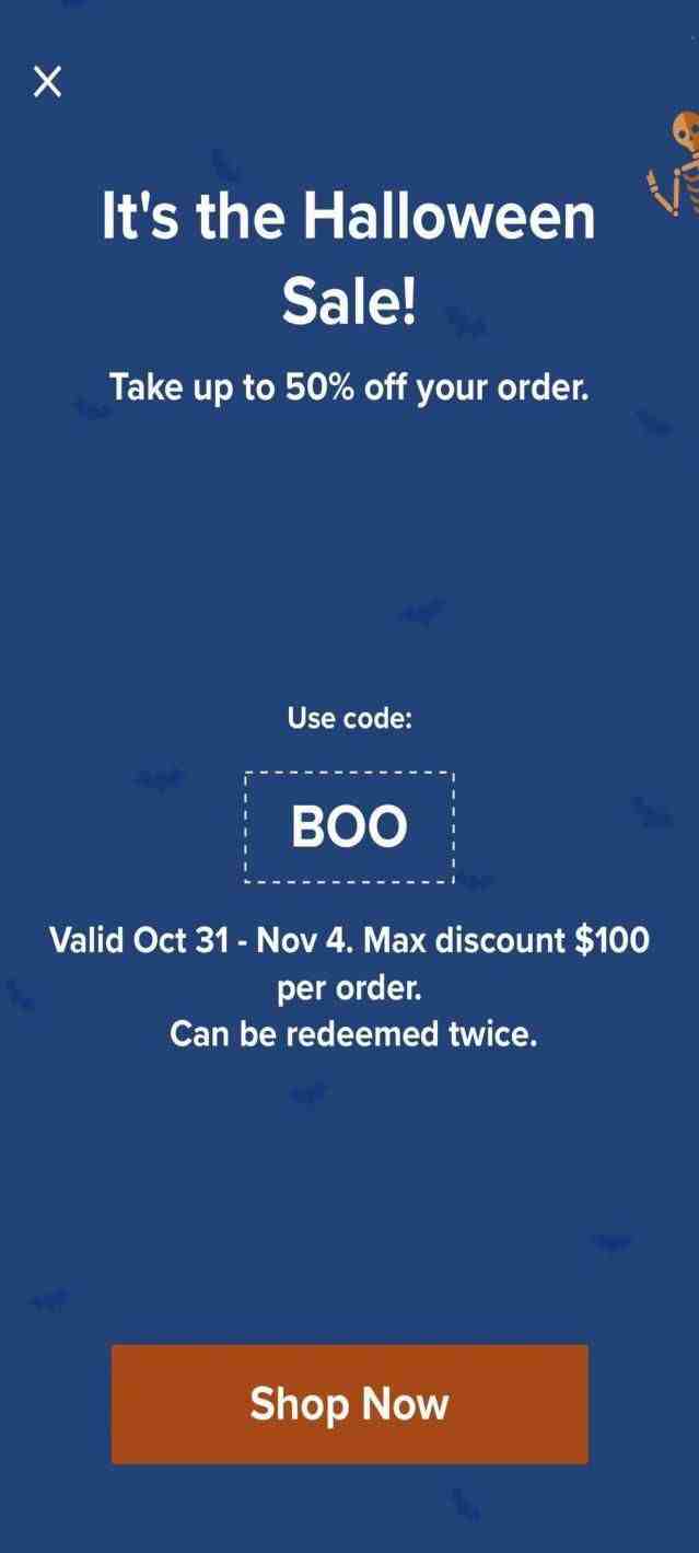 例如:在10月31日-11月4日期间,Wish全平台全品类低至5折的万圣节大促狂欢活动。