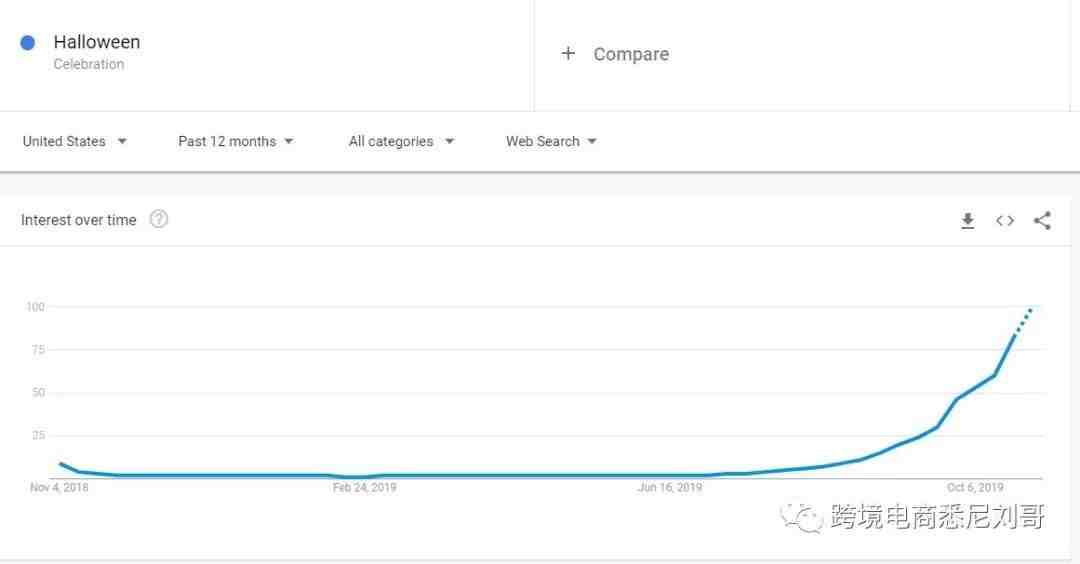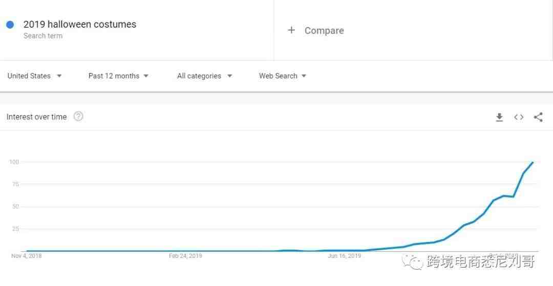 图2是搜索2019 halloween costumes ,两张图大体走势是一致的,不出意外的话过了今天,该词的热度就会下降。