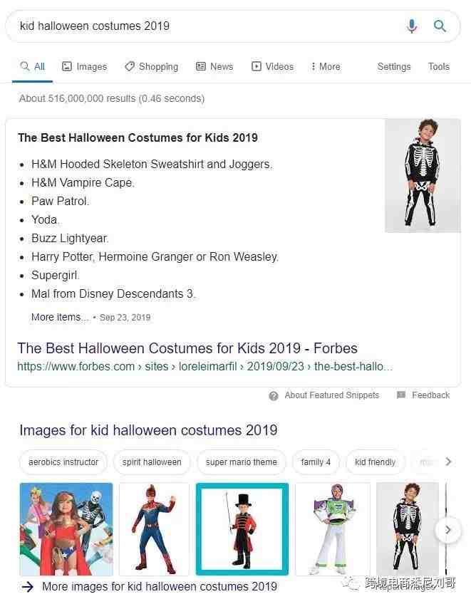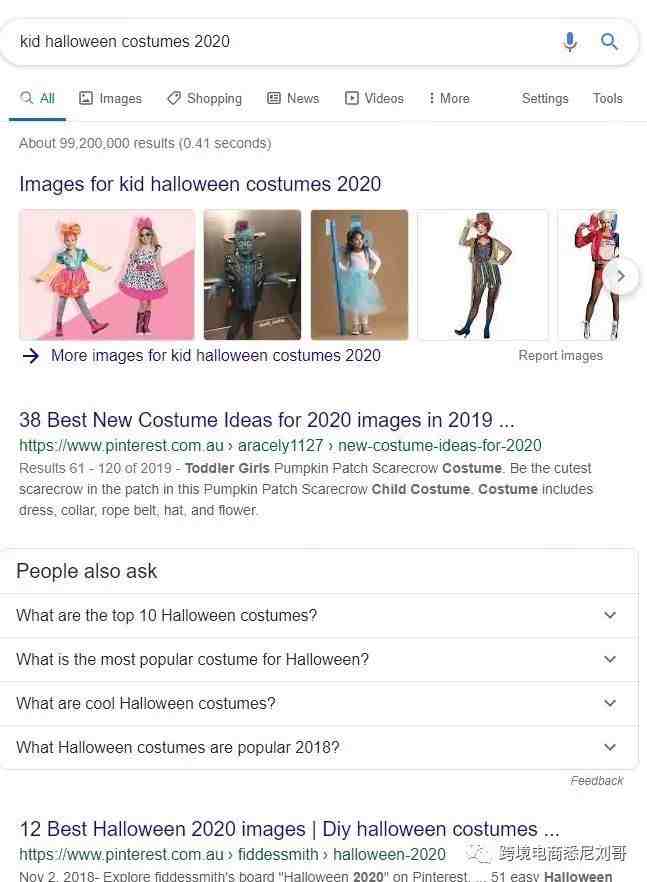 从下图可以看到kid halloween costumes 2020,还没人开始做这个关键词,先发会有优势!