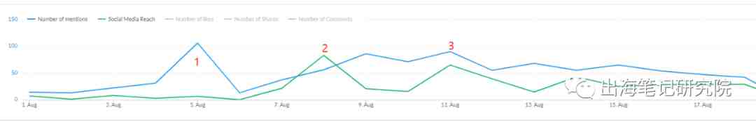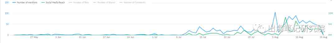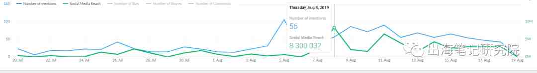 从7月份第一阶段的预热,到8月份第二阶段的引爆,这其中出现了3个波峰,分别是8月5日、8月8日、8月11日。尤其是在8月8-9日期间覆盖到了顶峰,触达人数达到830万!