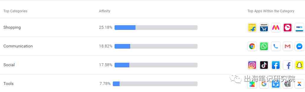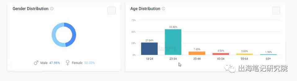 2. 在年龄层上,用户普遍为年轻人,其中25-34岁为消费主力军,占比高达55%。这与印度人口年龄的中位数27岁是相匹配的。